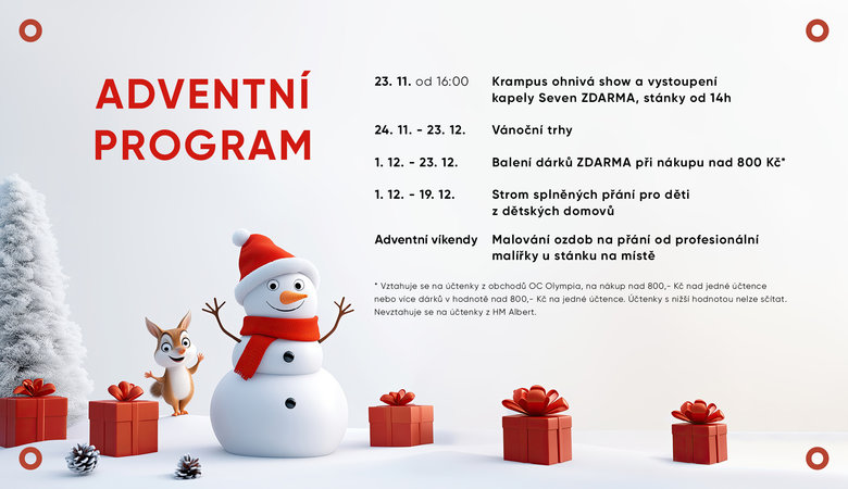 Vánoce se blíží rychlostí saní tažených soby! Připravili jsme pro vás sváteční program plný zábavy, radosti a vánočních kouzel, který vás naladí na tu pravou sváteční notu. ![]()