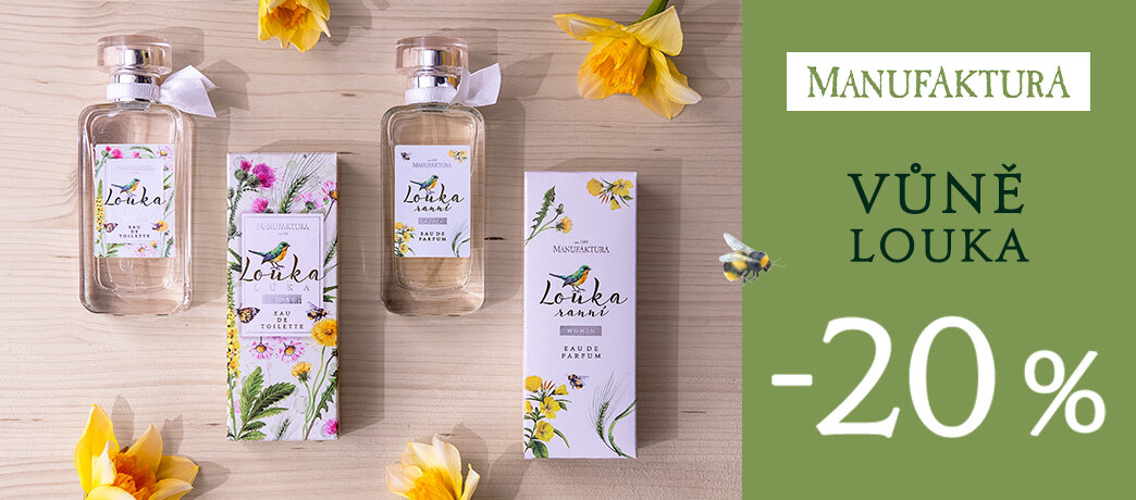 Dámská toaletní voda Louka a její intenzivnější podoba v parfémové vodě Ranní louka tvoří dokonalou dvojici na jarní dny. Po celý duben je můžete vyzkoušet s 20% slevou!