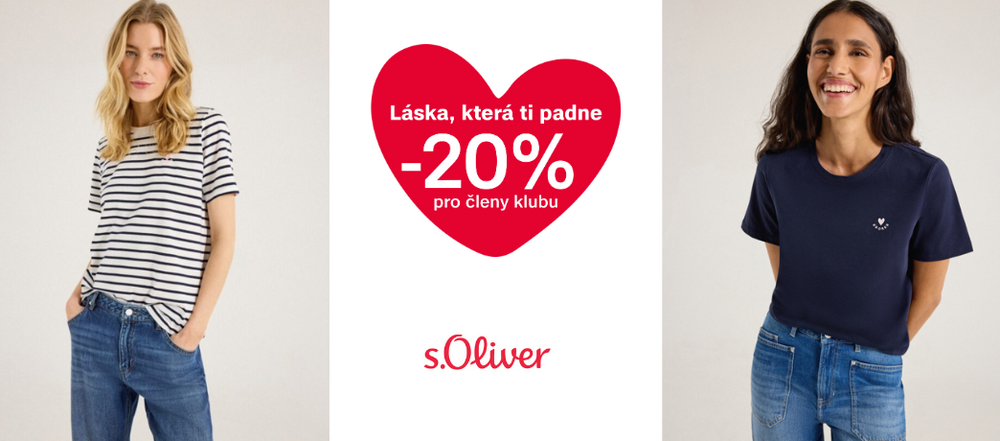 Oslavte svátek lásky se slevou 20 % pro členy klubu. Podělte se o lásku a udělejte radost svým blízkým nebo sami sobě. Těšíme se na vás v prodejně s.Oliver do 15.2.2026.