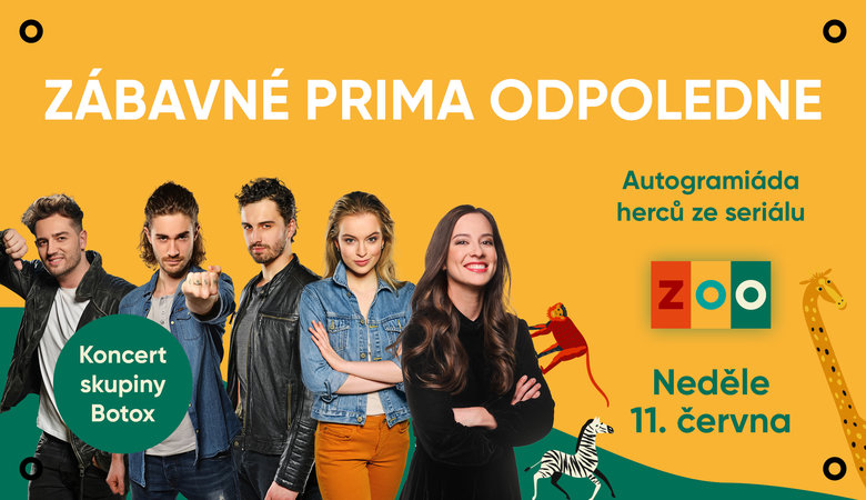 Seriál ZOO přijíždí do Olympie! Přinášíme vám zábavné odpoledne naplněné kvízy, soutěžemi, rozhovory, koncertem skupiny BOTOX a zakončené autogramiádou známých herců ze seriálu ZOO.