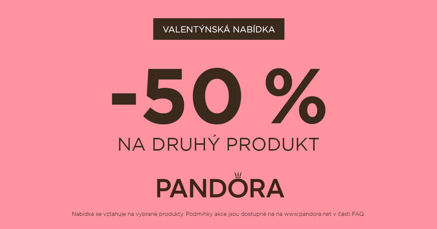 Při nákupu 2 kusů druhý, levnější s 50 % slevou. Platí pro vybrané produkty. Podmínky akce jsou dostupné na prodejnách anebo online na pandora.net.