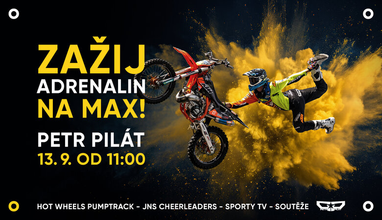 Do Olympia MB přijede už 13. září mistr Evropy a legenda českého freestyle motokrosu PETR „PILNÍK“ PILÁT a předvede triky, salta a skoky, ze kterých se tají dech – naživo, pár metrů od tebe.